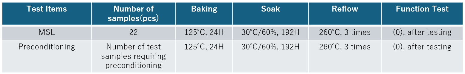 ・Standards ▶JESD22-A113, J-STD-020, etc.