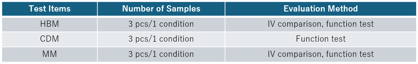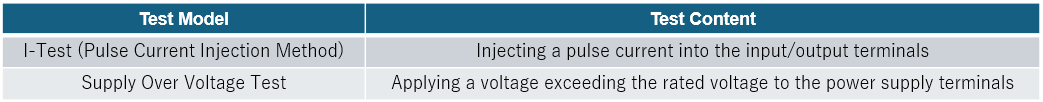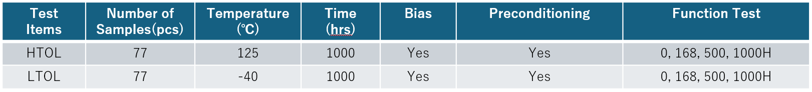 ・Standards ▶ AEC-Q100-002, AEC-Q100-011, AEC-Q100-003, etc.